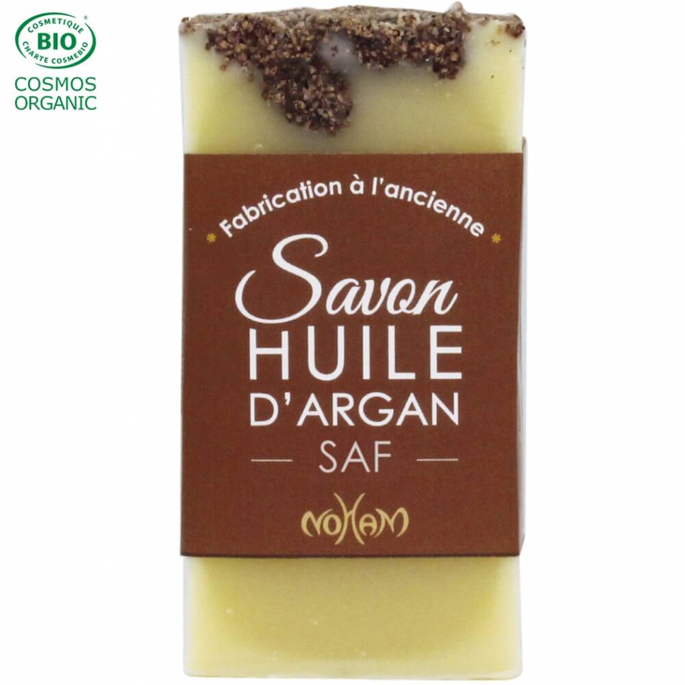Enrichi en huile d’argan bio non saponifiée qui procure un fort pouvoir réhydratant et protecteur à ce savon.