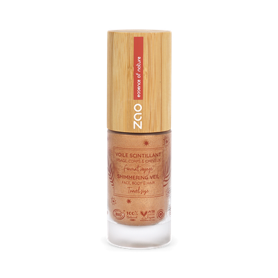 Le voile scintillant ZAO - Format voyage est le must have pour illuminer visage, corps et cheveux. Son format pompe vous facilite l'application.